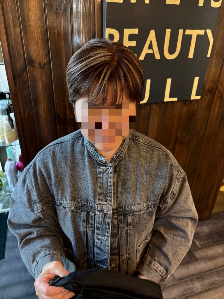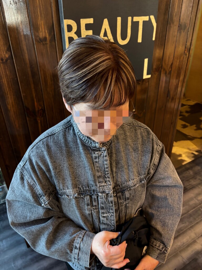 今回のお客様も、白髪染め一色ではなく、細かくハイライトを入れることで、